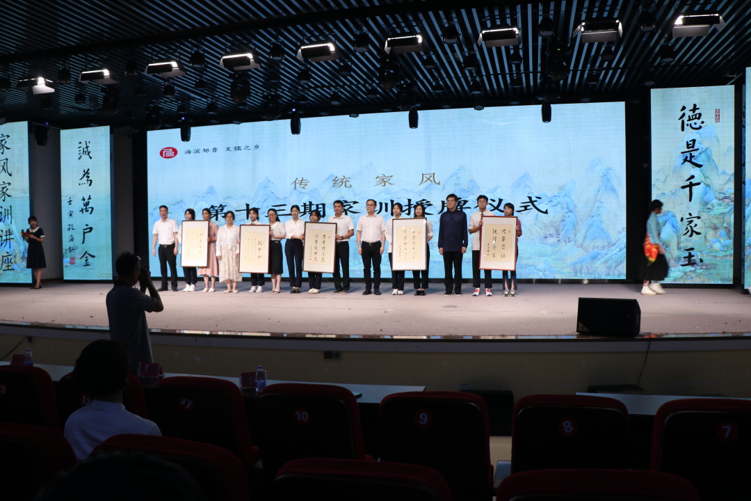 現場(chǎng)進行(xíng)家風家訓家庭代表授牌儀式