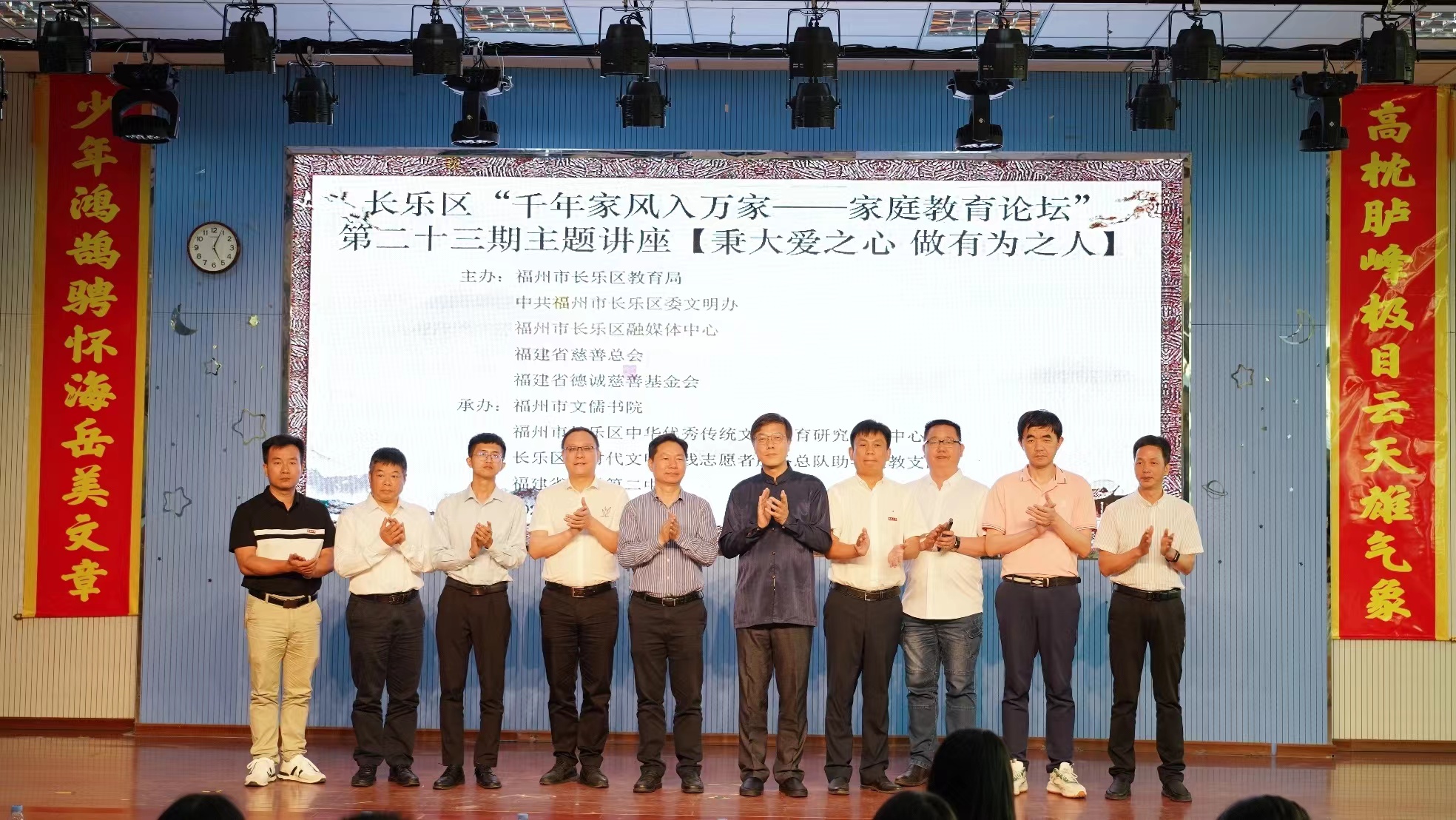 德是千家玉,誠爲萬戶金(jīn)。2023年5月(yuè)25日下午,由長樂(yuè)區教育局、長樂(yuè)區文(wén)明(míng)辦 、德誠慈善基金(jīn)會(huì) 、福建省慈善總會(huì)主辦,文(wén)儒學院承辦的(de)“千年家風入萬家——長樂(yuè)區‘家庭教育論壇’第二十三期主題講座《秉大(dà)愛之心 做有(yǒu)爲之人(rén)》”在長樂(yuè)區第二中學舉行(xíng)。