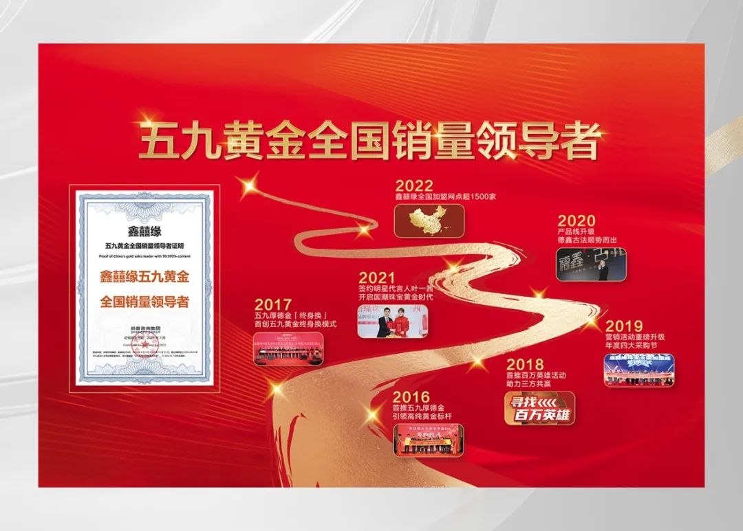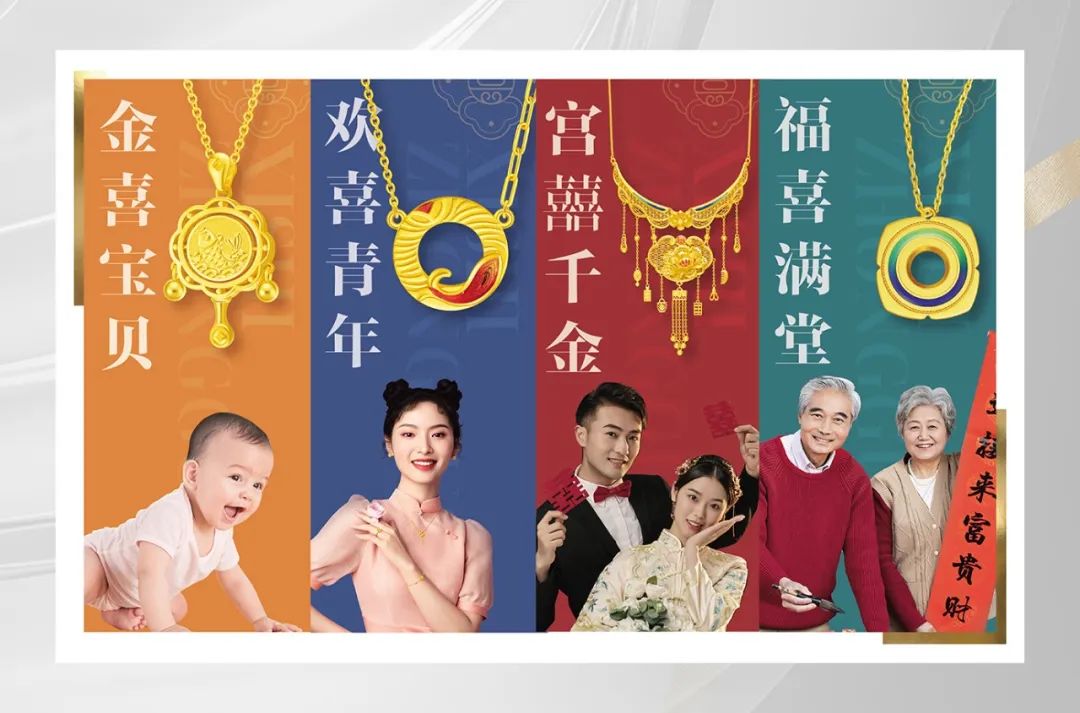 在2017年領先行(xíng)業(yè),推出五九厚德金(jīn)「終身換」商業(yè)模式,以“一次購(gòu)買 終身換新”的(de)換款服務理(lǐ)念,打造五九黃(huáng)金(jīn)終身換行(xíng)業(yè)新标杆。2023年7月(yuè),由國家權威咨詢機構調研認證,鑫囍緣五九黃(huáng)金(jīn)銷量全國遙遙領先,獲得五九黃(huáng)金(jīn)全國銷量領導者權威認證。從行(xíng)業(yè)标杆到(dào)行(xíng)業(yè)領導者,鑫囍緣從産品力、賦能(néng)力、和(hé)商業(yè)模式等多面創新,築牢品牌根基,夯實品牌發展。鑫囍緣珠寶深耕中國喜文(wén)化,深入洞察精準受衆畫像和(hé)差異化喜文(wén)化産品的(de)研發,推出《中國喜事》産品項目,提升品牌辨識度。中國喜事聚焦中國喜文(wén)化,深挖四大(dà)消費人(rén)群的(de)喜事産品研發,以中國喜事爲印記,結合時尚潮流設計(jì),創新工(gōng)藝研發,打造出符合新生代消費需求的(de)國潮文(wén)化喜事黃(huáng)金(jīn)。