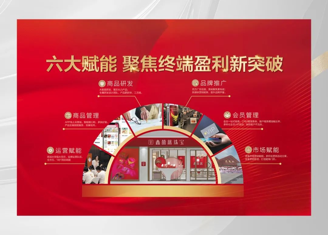 鑫囍緣珠寶依托常州金麗朗珠寶有限公司強大(dà)的(de)企業(yè)實力,通過商品研發、品牌推廣、會(huì)員管理(lǐ)、市場(chǎng)賦能(néng)、商品管理(lǐ)、運營賦能(néng)等六大(dà)模塊,始終秉承“誠信、利他(tā)、共赢”的(de)宗旨,深耕市場(chǎng)及終端運營服務,助力合作夥伴長久經營,攜手合作夥伴聚力向前。