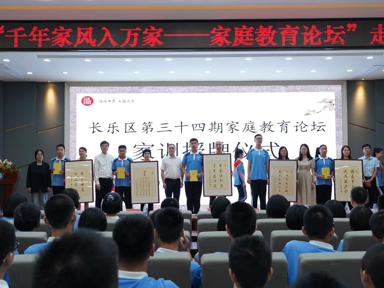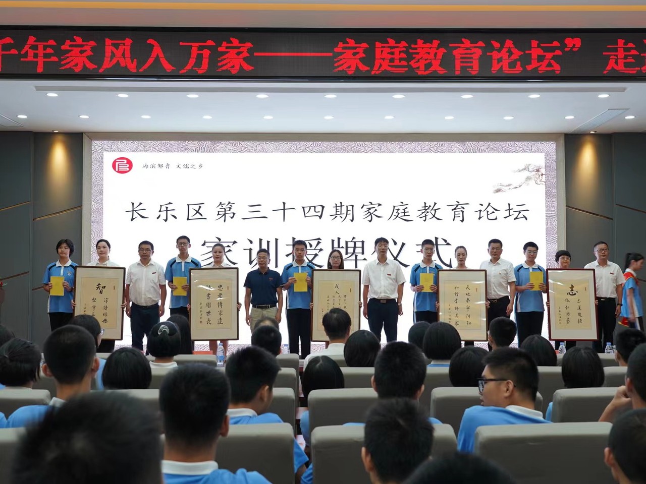 德誠慈善基金(jīn)會(huì)爲航城中學優秀家庭代表準備了家訓牌匾和(hé)家庭共讀(dú)書(shū)籍《君子品格》,長樂(yuè)區區教育局機關黨總支李永剛書(shū)記等領導嘉賓現場(chǎng)爲十組家庭代表頒發家訓牌匾。