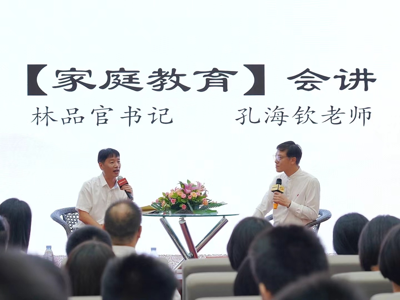 随後,孔海(hǎi)欽老師(shī)與李品官書(shū)記先生進行(xíng)了家庭教育會(huì)講。會(huì)講中,孔海(hǎi)欽老師(shī)稱贊李品官書(shū)記爲“教育家”,對其教育理(lǐ)念表示高(gāo)度肯定。李品官書(shū)記則謙稱自己是“孩子王”,介紹了近35年從教經驗下的(de)教育方式方法以及教育理(lǐ)念,兩位就未來繼續推進續優秀傳統文(wén)化進校(xiào)園、進課堂進行(xíng)深入交流,并答現場(chǎng)家庭代表有(yǒu)關提問。