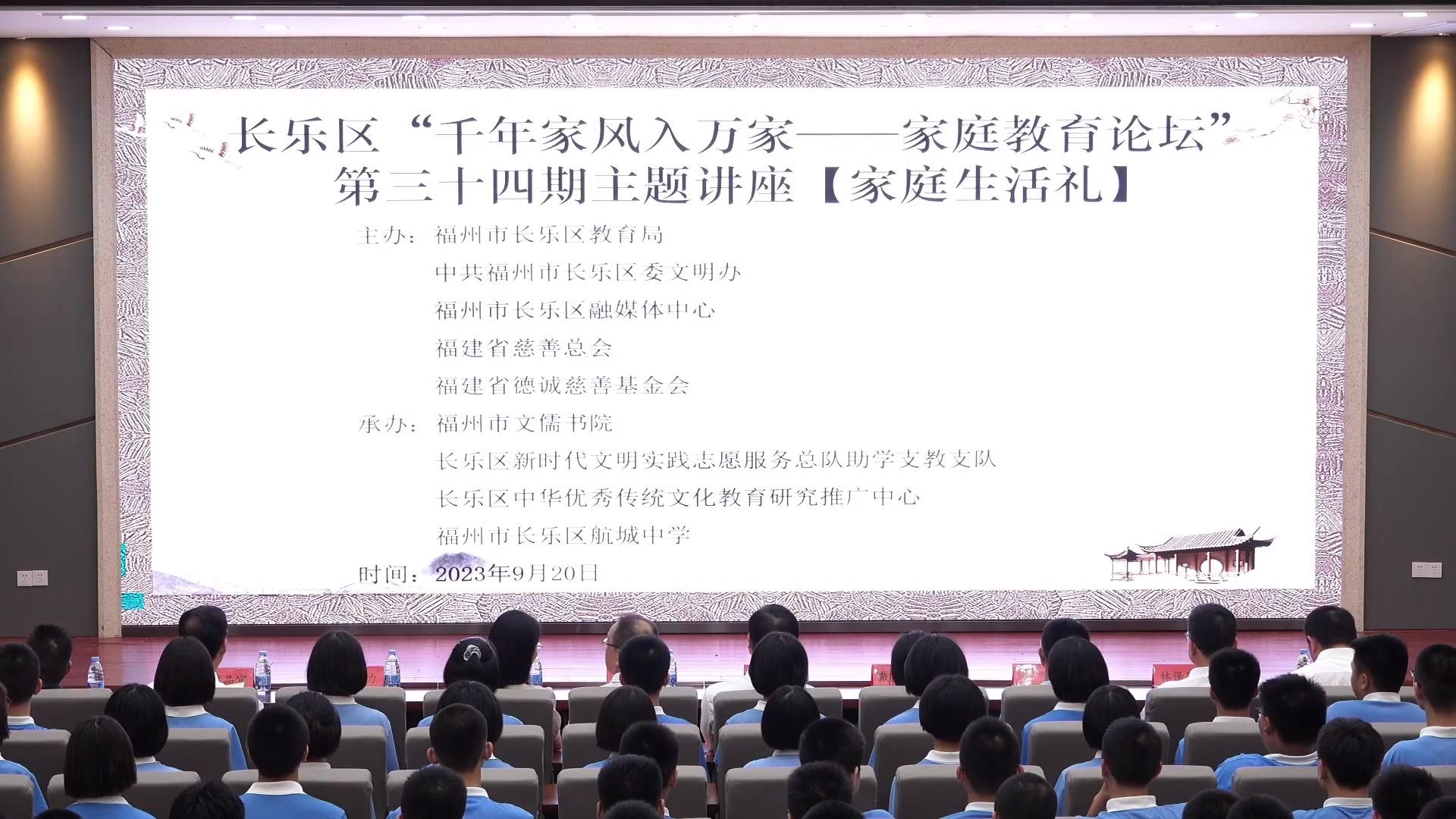 德是千家玉,誠爲萬戶金(jīn)。2023年9 月(yuè) 20 日下午,由福州市長樂(yuè)區教育局、中共福州市長樂(yuè)區委文(wén)明(míng)辦、福州市長樂(yuè)區融媒體中心、德誠慈善基金(jīn)會(huì)、福建省慈善總會(huì)聯合主辦,福州市文(wén)儒書(shū)院承辦的(de)“千年家風入萬家——長樂(yuè)區家庭教育論壇”第三十四期主題講座《家庭生活禮》在長樂(yuè)航城中學隆重舉行(xíng)。