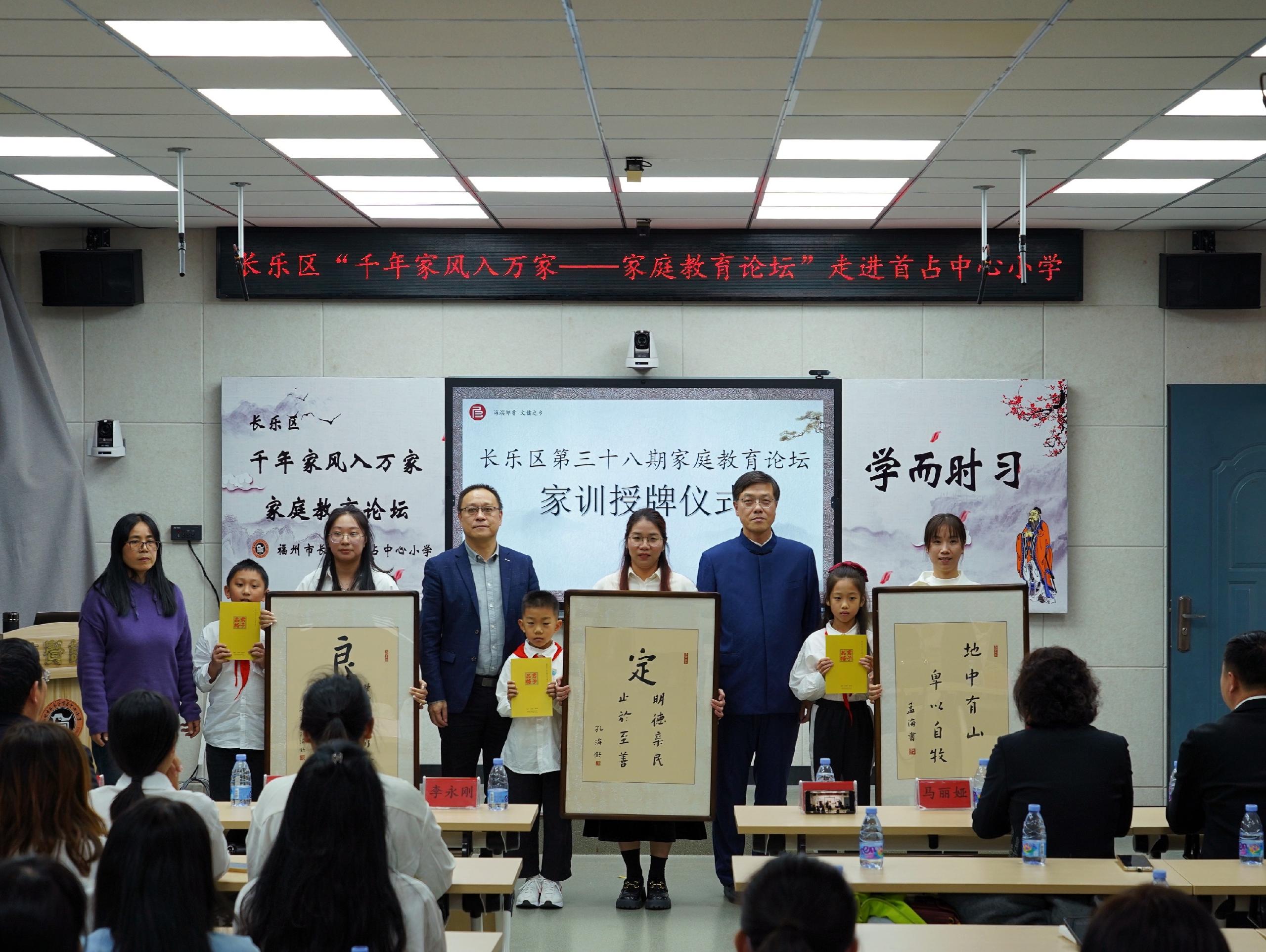 論壇上(shàng),德誠慈善基金(jīn)會(huì)爲優秀家庭代表,準備了家訓牌匾,并于現場(chǎng)舉行(xíng)了“家風家訓家庭代表授牌儀式”,區教育局機關黨總支李永剛書(shū)記、文(wén)儒書(shū)院院長孔海(hǎi)欽、德誠慈善基金(jīn)會(huì)代表等嘉賓親自爲優秀家庭代表頒發家訓牌匾。