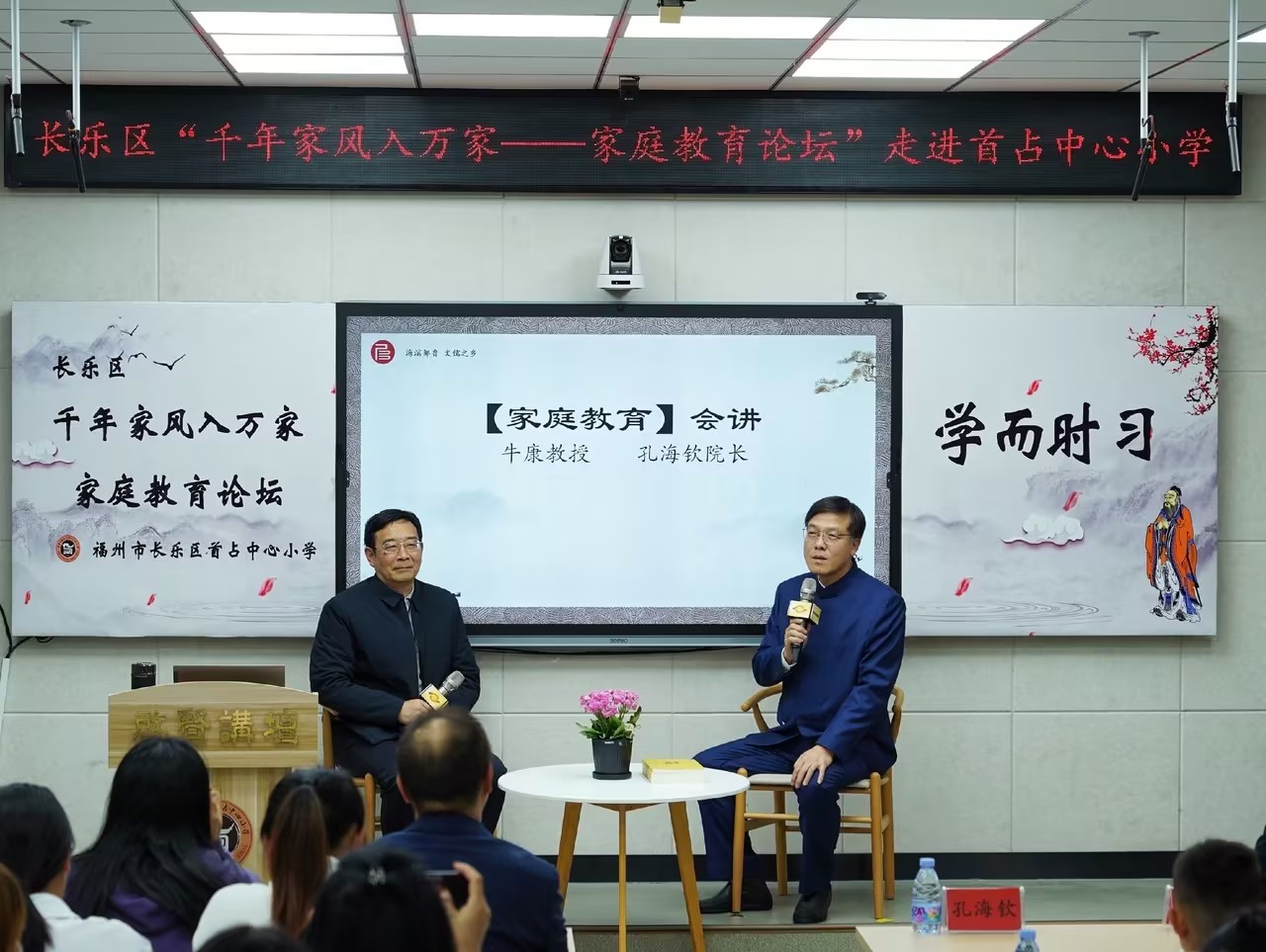 此次論壇特邀福州市孔子協會(huì)會(huì)長、福州大(dà)學人(rén)文(wén)學院教授牛康與孔老師(shī)共同展開(kāi)了家庭教育主題講座,深入探討(tǎo)如(rú)何進行(xíng)家庭教育以及培養學子學習(xí)等教育方法,并與在場(chǎng)家長進行(xíng)互動交流。