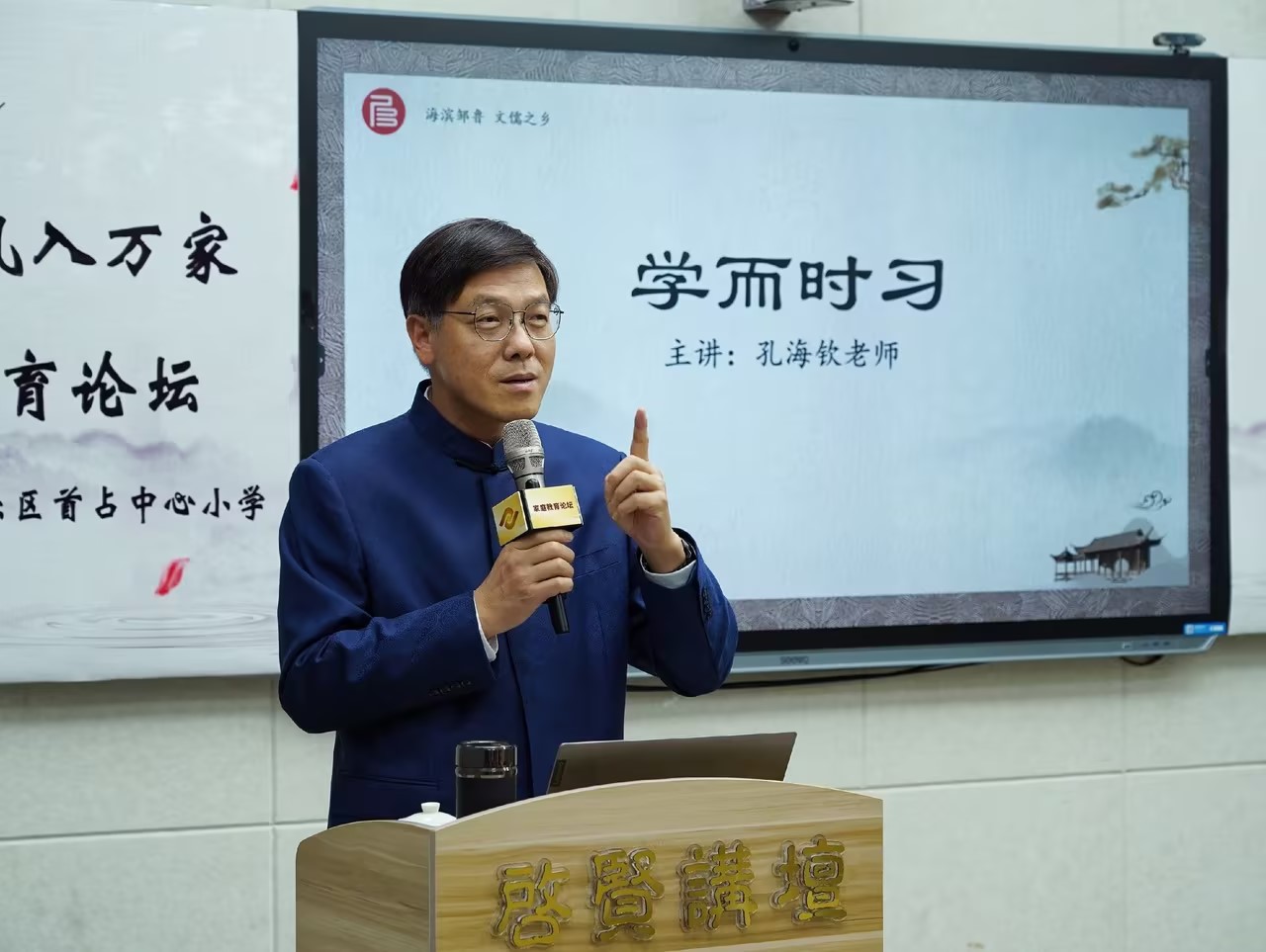 随後,孔子第75代世孫、文(wén)儒書(shū)院院長孔海(hǎi)欽老師(shī)進行(xíng)了“學而時習(xí)”的(de)主題講座。