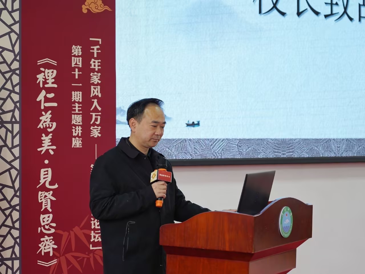 德是千家玉,誠爲萬戶金(jīn)。2023年12月(yuè)26日下午,由長樂(yuè)區教育局、德誠慈善基金(jīn)會(huì)等單位主辦,文(wén)儒學院承辦的(de)“千年家風入萬家——家庭教育論壇”第四十一期主題講座《裏仁爲美(měi)·見賢思齊》在福州市長樂(yuè)區漳新中學舉行(xíng)。