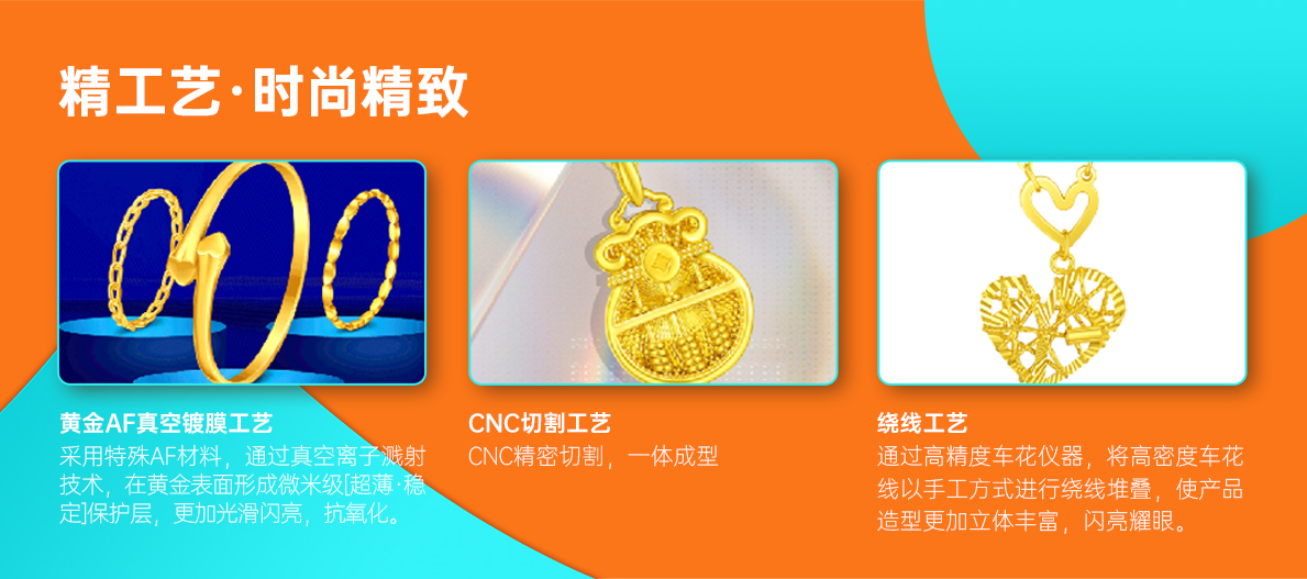 開(kāi)啓黃(huáng)金(jīn)飾品的(de)精品化變革,赤心優創極具潮流風尚及質感的(de)精品金(jīn)飾,回饋消費者。精益求精,辰領未來。