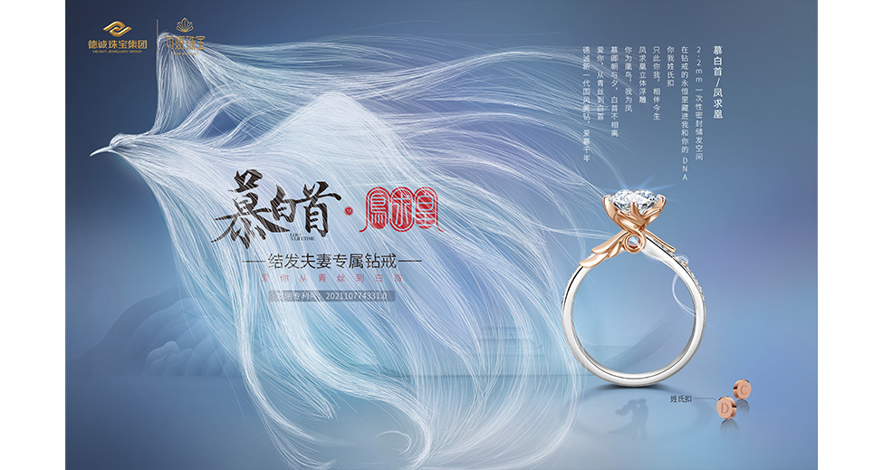 以傳承2400年大(dà)漢婚儀爲靈感,将“結發夫妻”這一中國傳統婚禮民(mín)俗與鑽石文(wén)化相(xiàng)融合,用(yòng)西(xī)方鑽石擁抱東方文(wén)化,向消費者傳遞意義非凡的(de)“結發夫妻專屬鑽戒”之概念,寓意結發爲夫妻,恩愛兩不疑;愛你(nǐ),從青絲到(dào)白首。